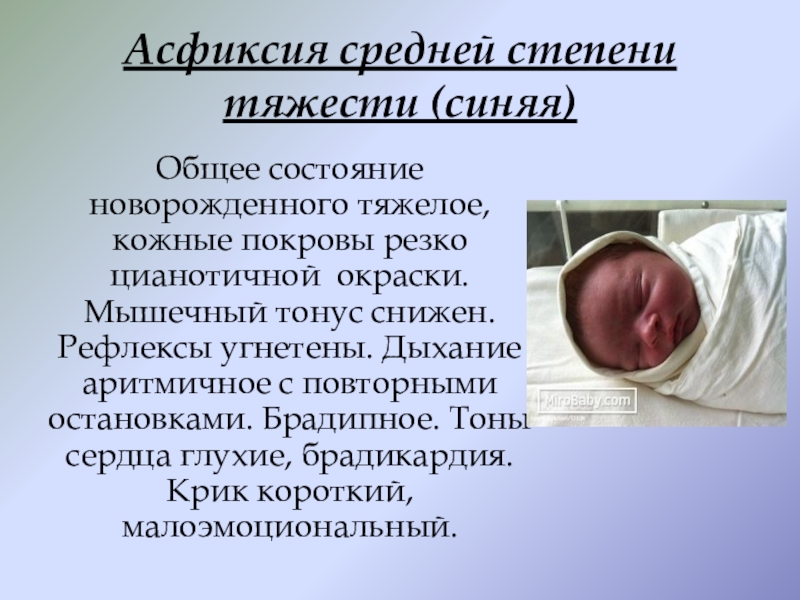 Слайд 6Асфиксия средней степени тяжести (синяя)