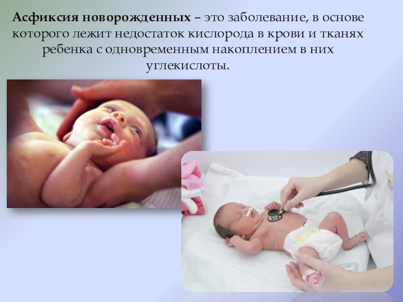 Слайд 2Асфиксия новорожденных – это заболевание, в основе которого лежит недостаток кислорода