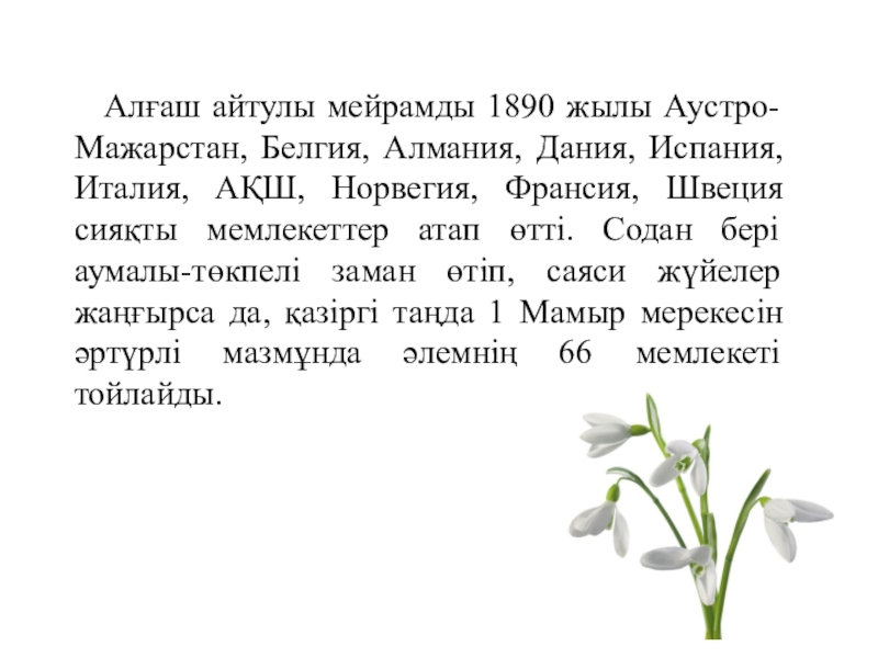 Слайд 4 Алғаш айтулы мейрамды 1890 жылы Аустро-Мажарстан, Белгия, Алмания, Дания,
