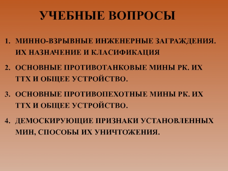 Слайд 4МИННО-ВЗРЫВНЫЕ ИНЖЕНЕРНЫЕ ЗАГРАЖДЕНИЯ. ИХ НАЗНАЧЕНИЕ И КЛАСИФИКАЦИЯ