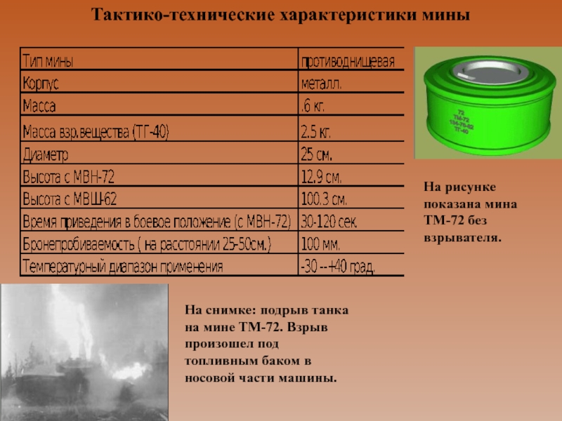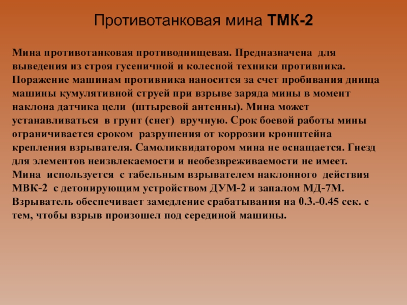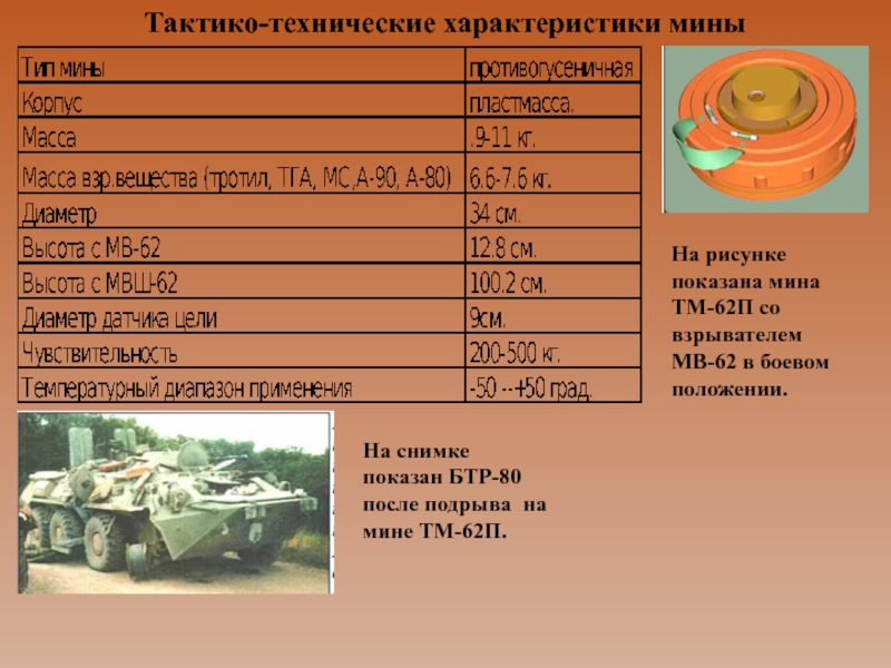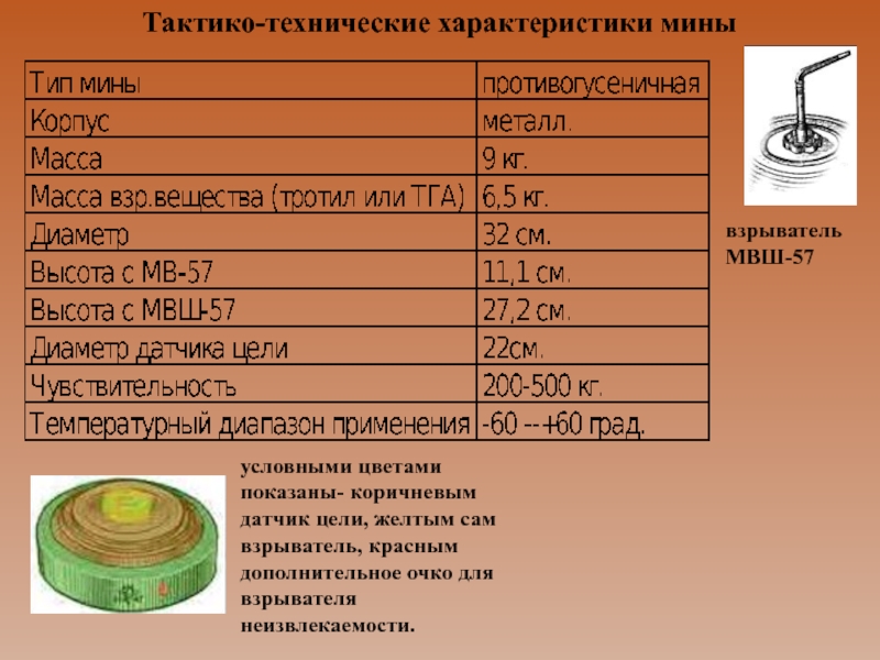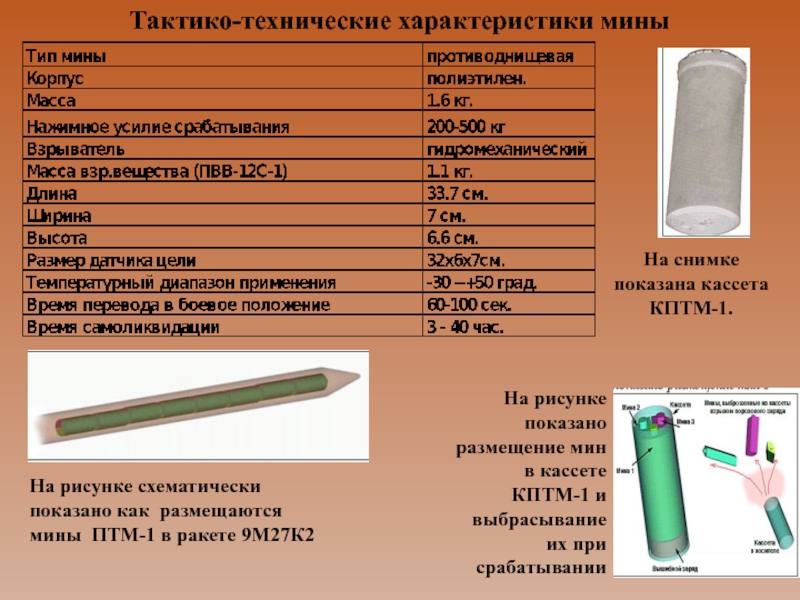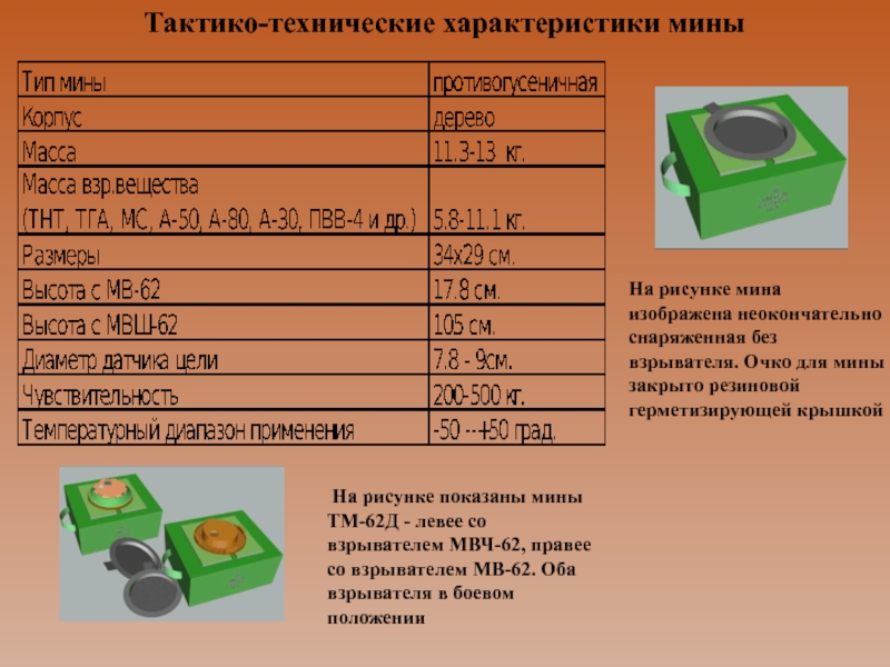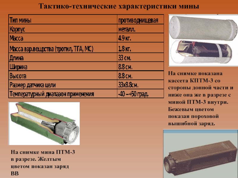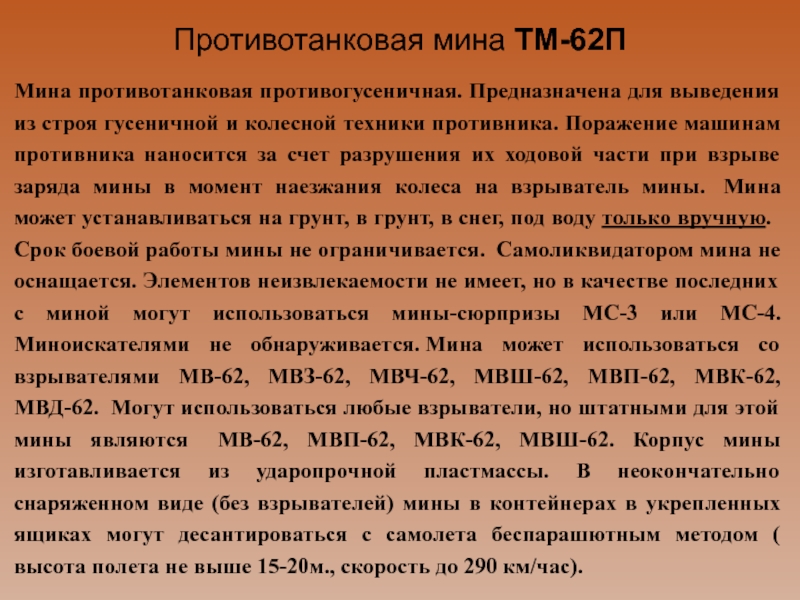 Слайд 9ОСНОВНЫЕ ПРОТИВОТАНКОВЫЕ МИНЫ РК. ИХ ТТХ И ОБЩЕЕ УСТРОЙСТВО.