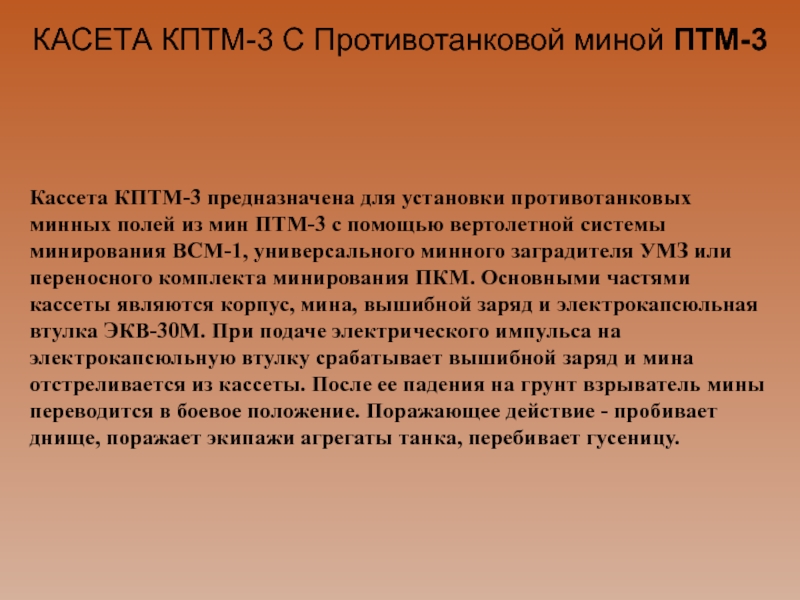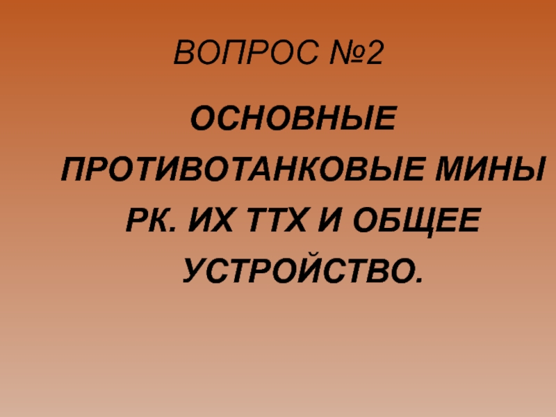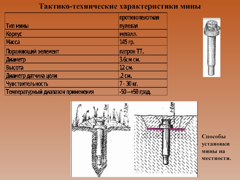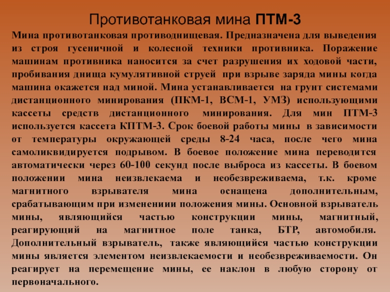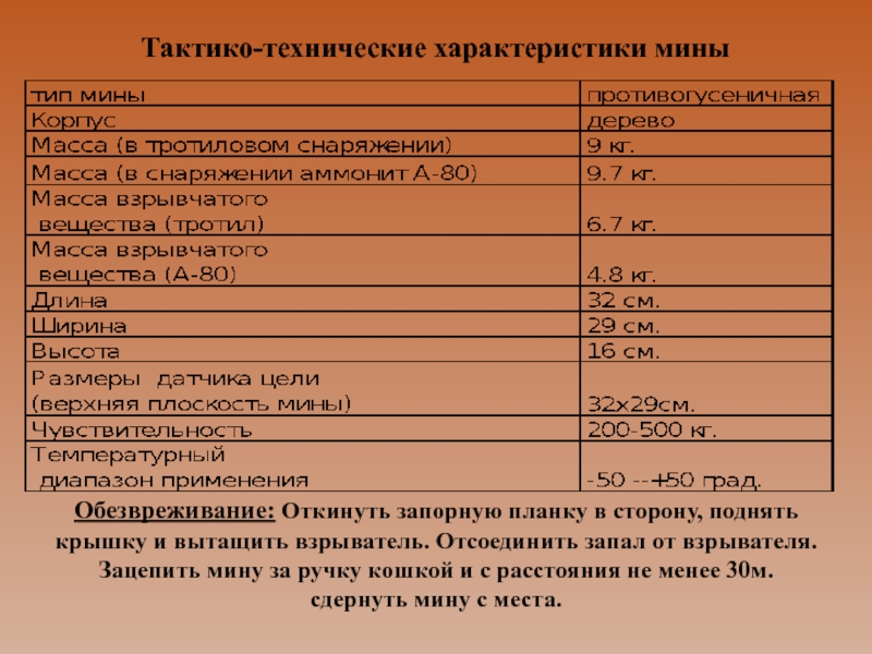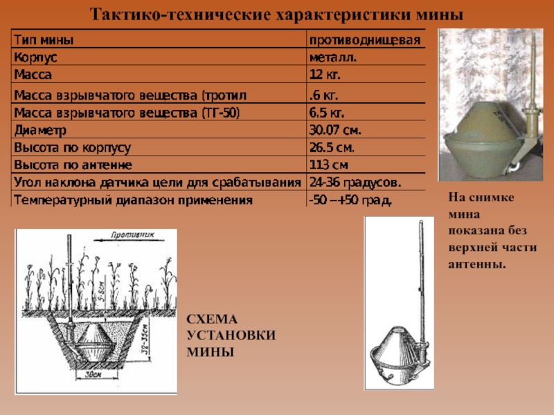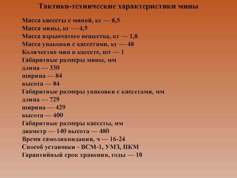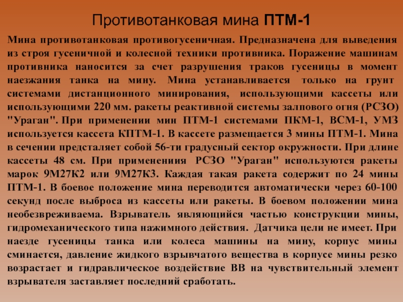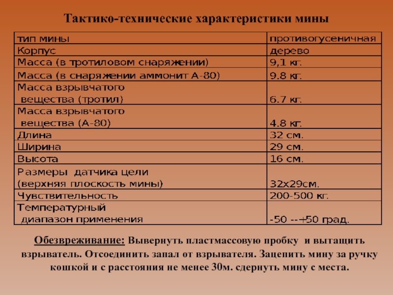 Слайд 9ОСНОВНЫЕ ПРОТИВОТАНКОВЫЕ МИНЫ РК. ИХ ТТХ И ОБЩЕЕ УСТРОЙСТВО.