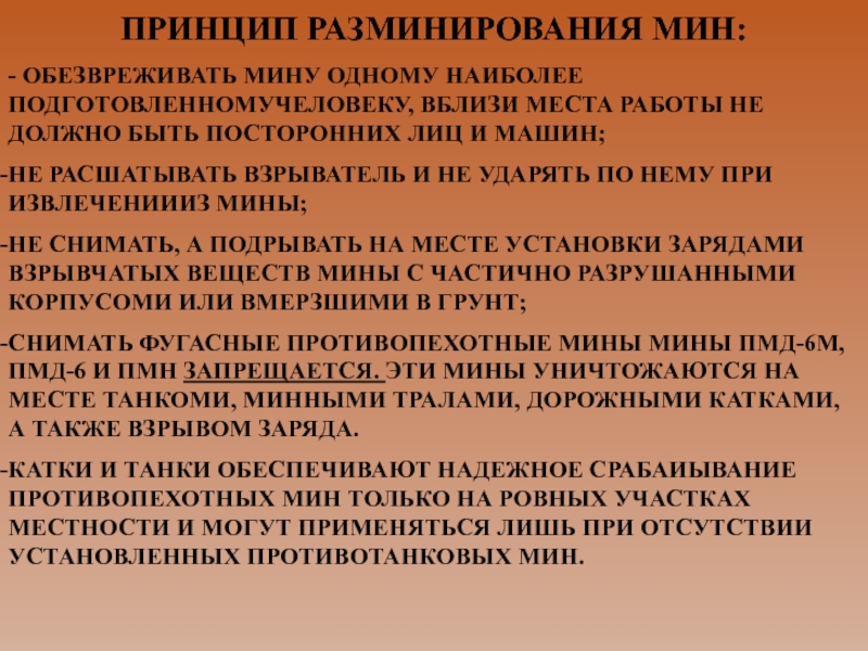 Слайд 80ПРИНЦИП РАЗМИНИРОВАНИЯ МИН: