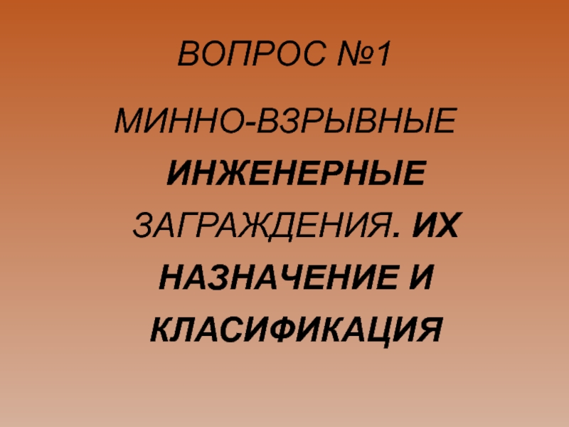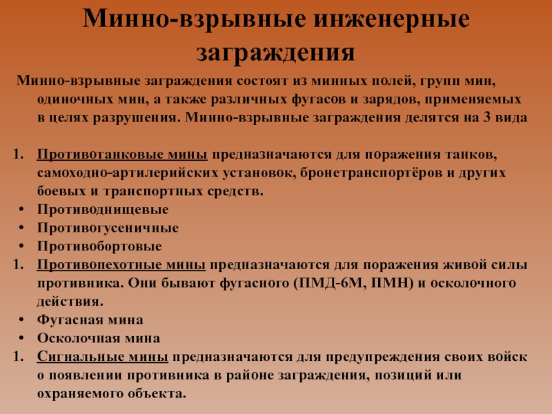 МИННО-ВЗРЫВНЫЕ ИНЖЕНЕРНЫЕ ЗАГРАЖДЕНИЯ. ИХ НАЗНАЧЕНИЕ И КЛАCИФИКАЦИЯ