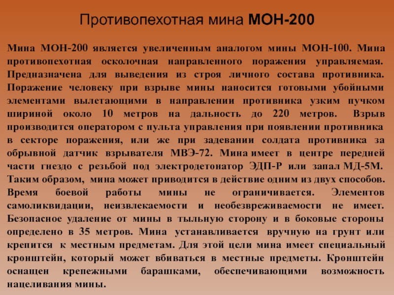 Мина МОН-200 является увеличенным аналогом мины МОН-100. Мина противопехотная