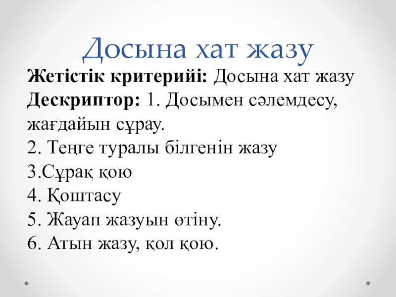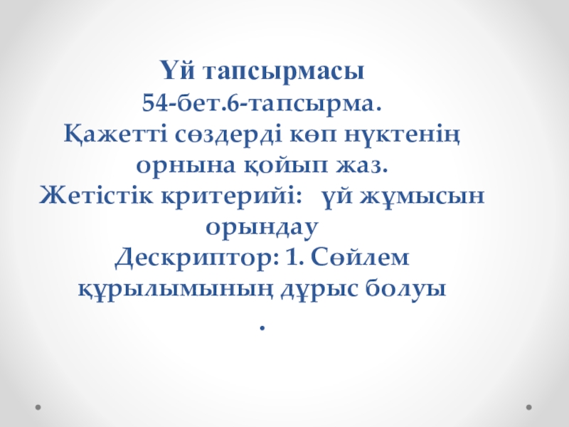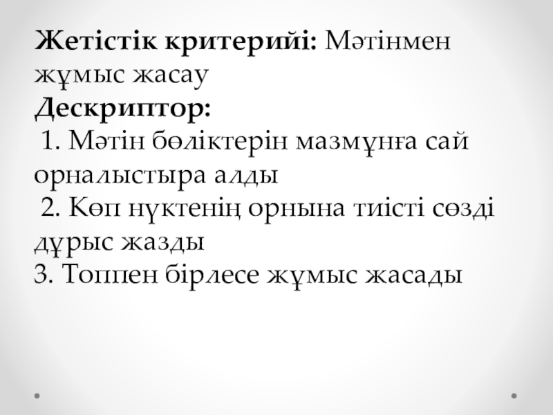 Дескриптор: 1. Сөйлем құрылымының дұрыс болуы