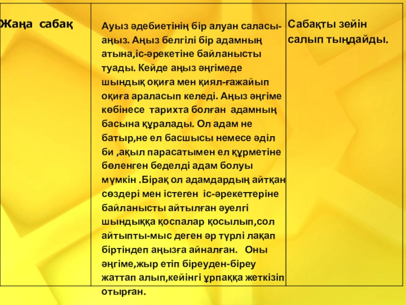 Презентация, доклад на тему Ашық сабақ тақырыбы: Аңыз әңгімелер 5 сынып