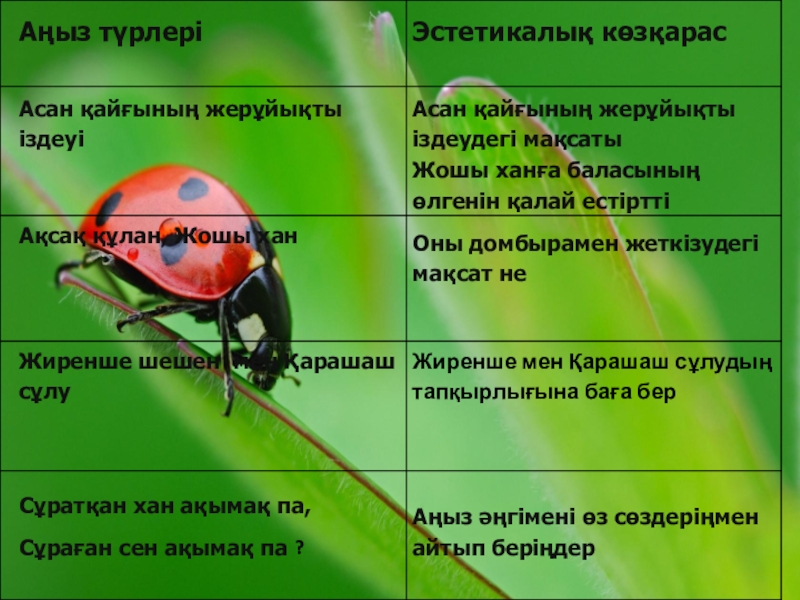 Слайд 10 Аңыз әңгімедегікейіпкер-лер