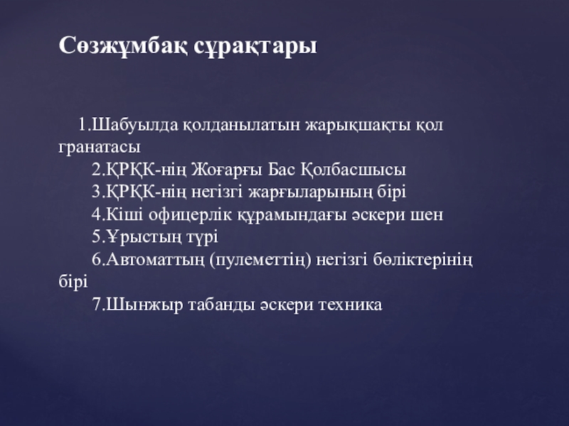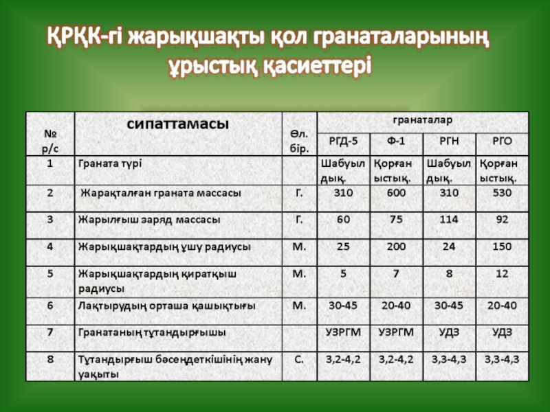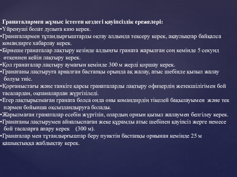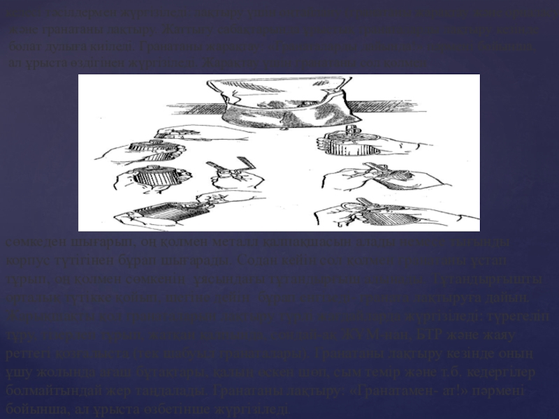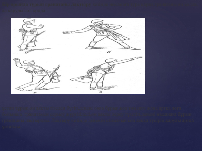 гранатаны лақтырады. Лақтыру кезінде дененің салмағын сол аяққа түсіріп,қаруды артқа