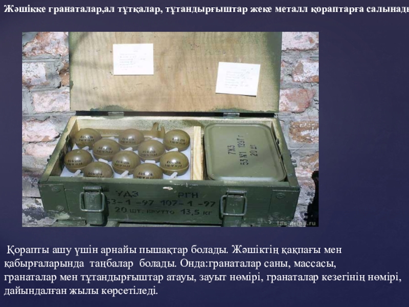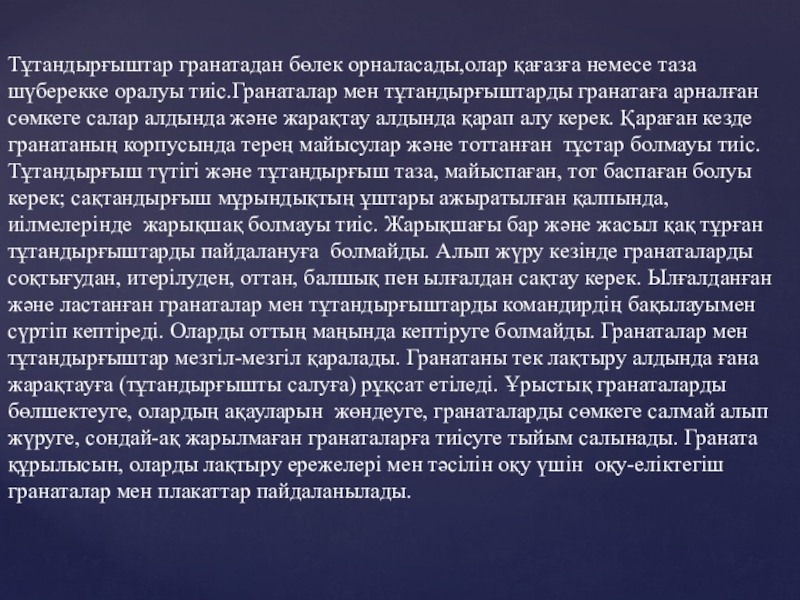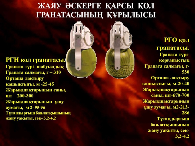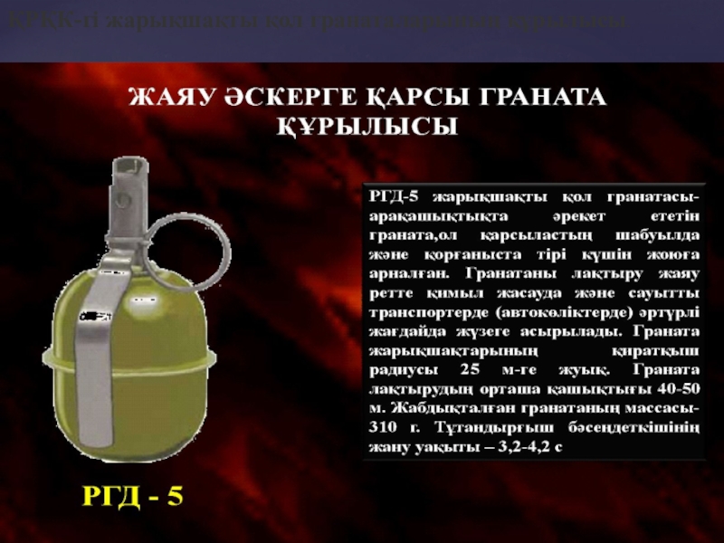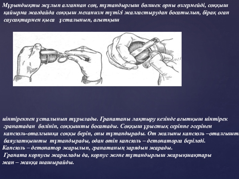 Капсюль – детонатор жарылып, гранатаның зарядын жарады.