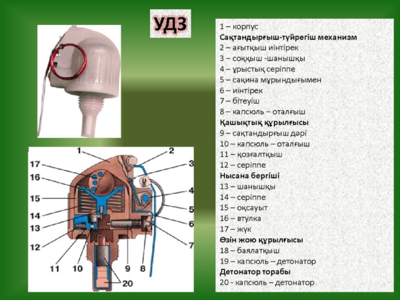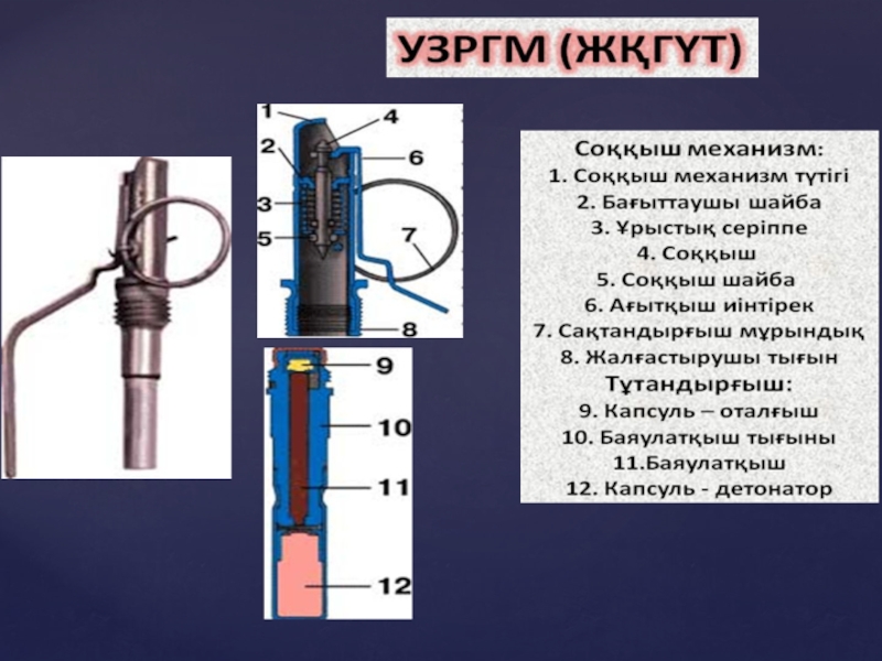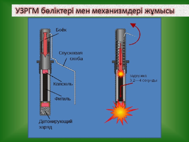 гранатадан бөлініп, соққышты босатады. Соққыш ұрыстық серіппе әсерінен