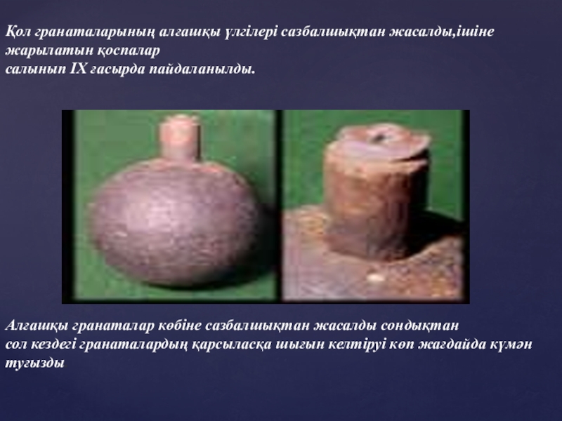 Алғашқы гранаталар көбіне сазбалшықтан жасалды сондықтан