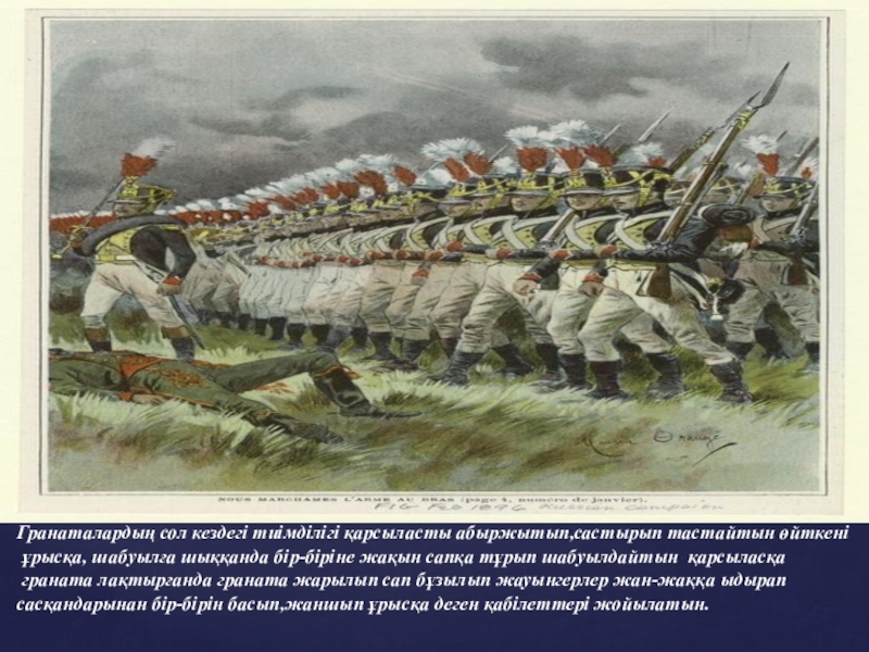 бойынша гранатамен сермеу жүргізіледі,оң аяқты дереу түзетіп,денені нысанаға бұрып