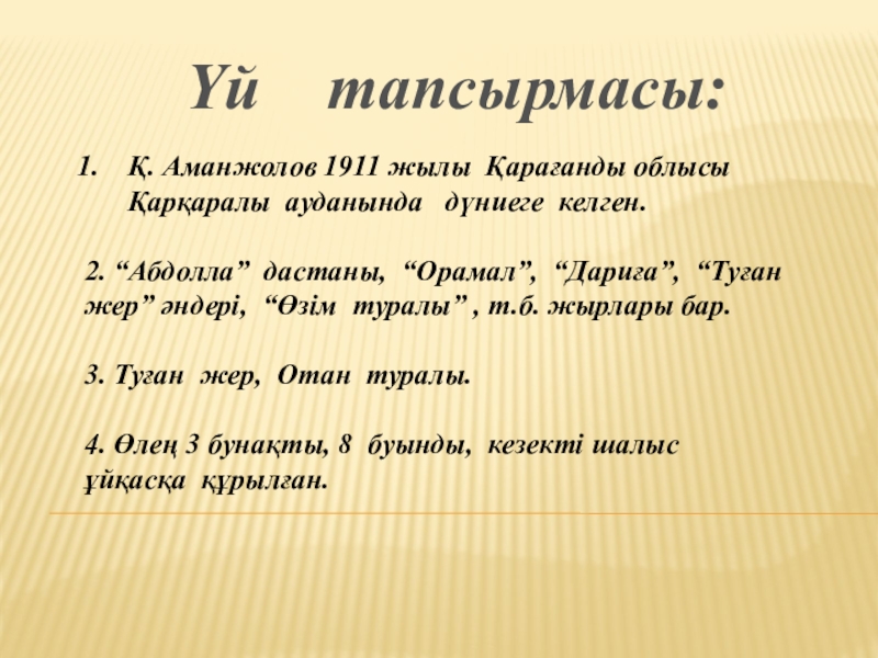 Слайд 1Үй тапсырмасы: