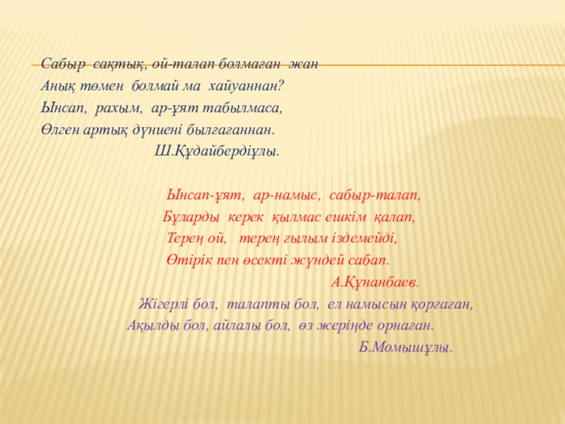 Ынсап-ұят, ар-намыс, сабыр-талап,