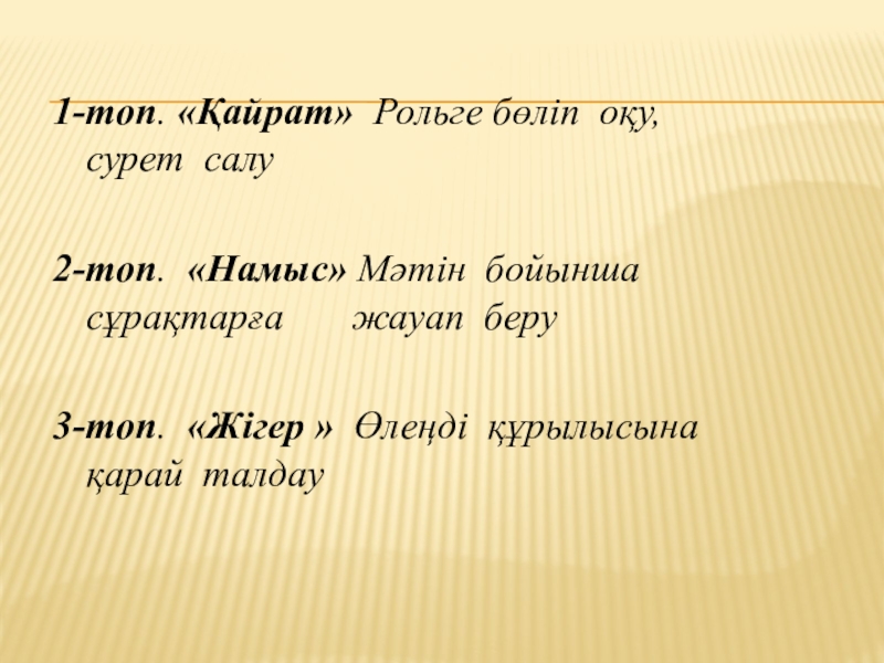 Слайд 61-топ. «Қайрат» Рольге бөліп оқу, сурет салу