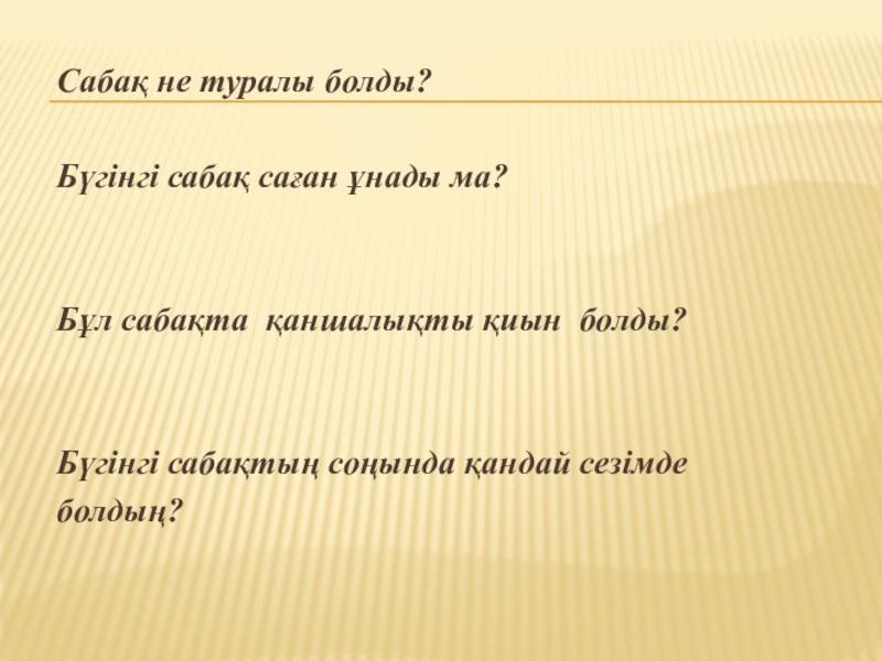Бүгінгі сабақ саған ұнады ма?