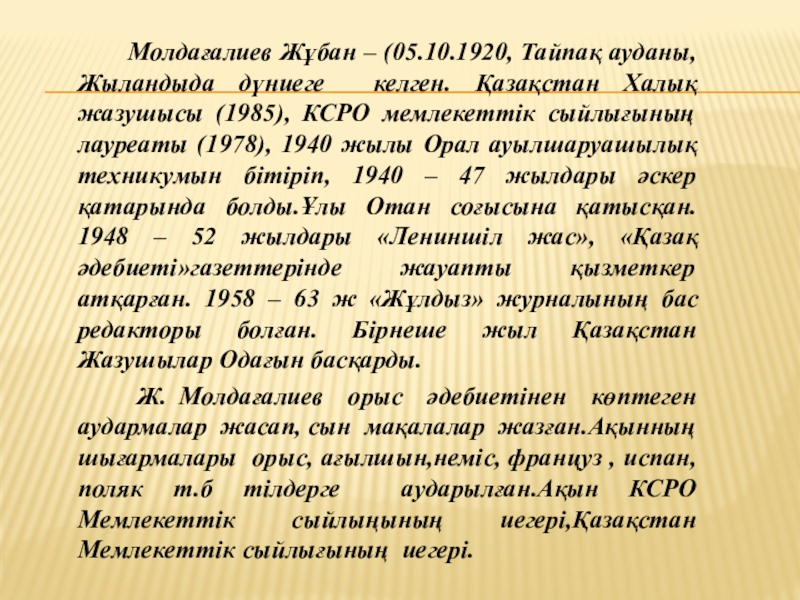 Ж.Молдағалиев кім?