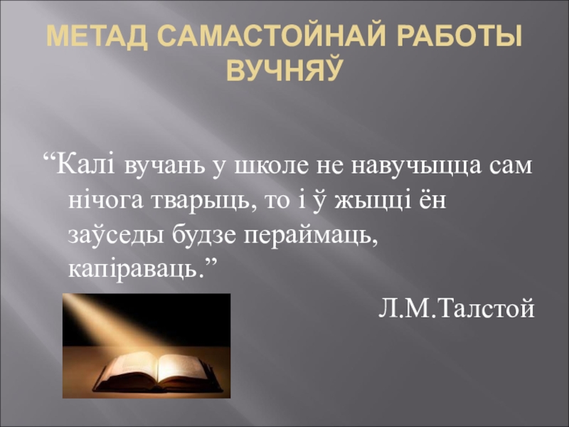 МЕТАД САМАСТОЙНАЙ РАБОТЫ ВУЧНЯЎ“Калі вучань у школе не навучыцца сам нічога тварыць, то і ў жыцці ён