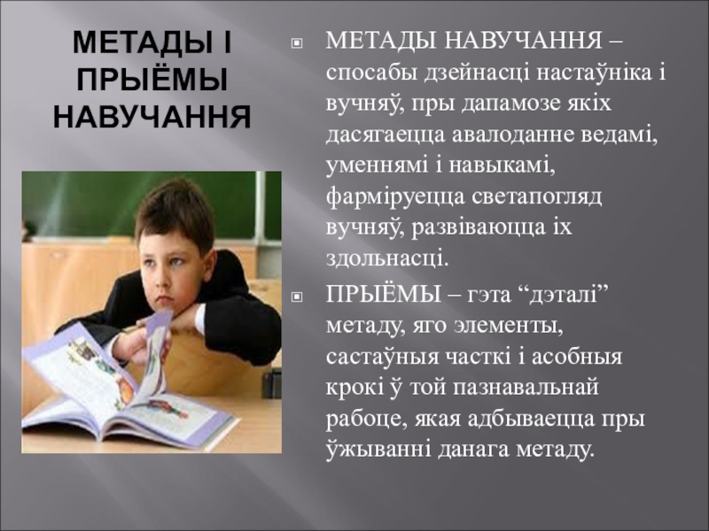 Слайд 4МЕТАДЫ І ПРЫЁМЫ НАВУЧАННЯ