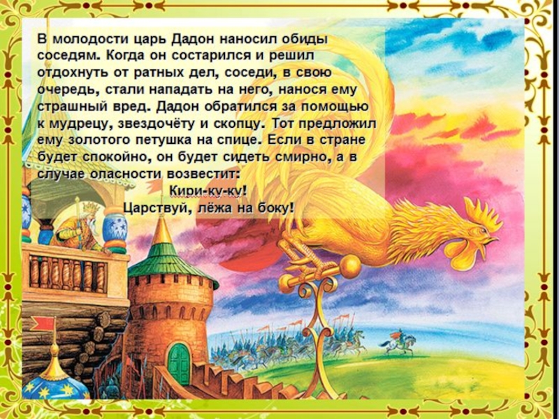 Презентация, доклад на тему А.С.Пушкин. Сказка о золотом петушке.