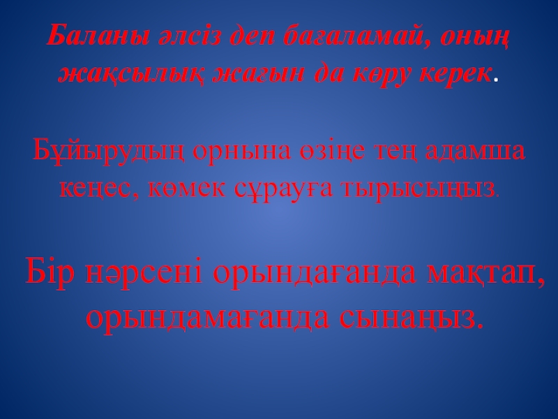 Бір нәрсені орындағанда мақтап, орындамағанда сынаңыз.