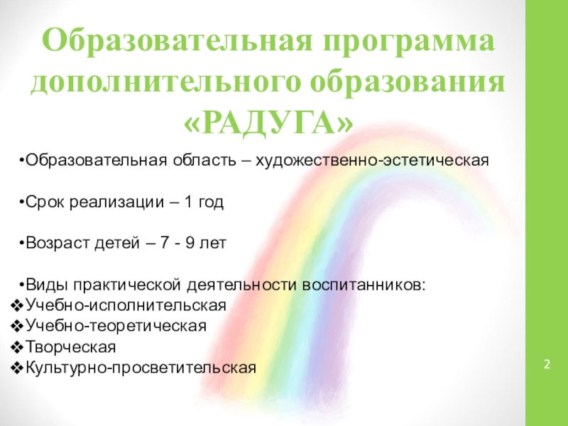 «Дополнительная общеразвивающая программа для младших школьников «РАДУГА»
