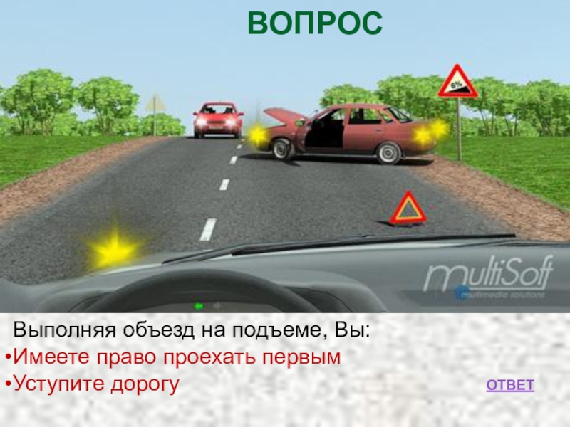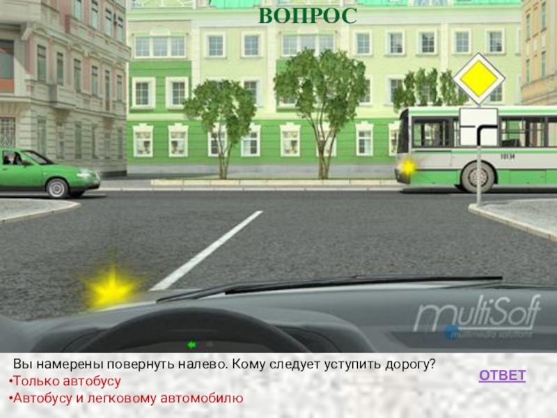 Вы находитесь на главной дороге и имеете преимущество перед легковым автомобилем, находящимся на второстепенной дороге. С автобусом, находящимся на главной дороге, Вы разъезжаетесь по правилам проезда перекрестков равнозначных дорог. Поэтому необходимо уступить дорогу только автобусу, т. к. он приближается к Вам справа.