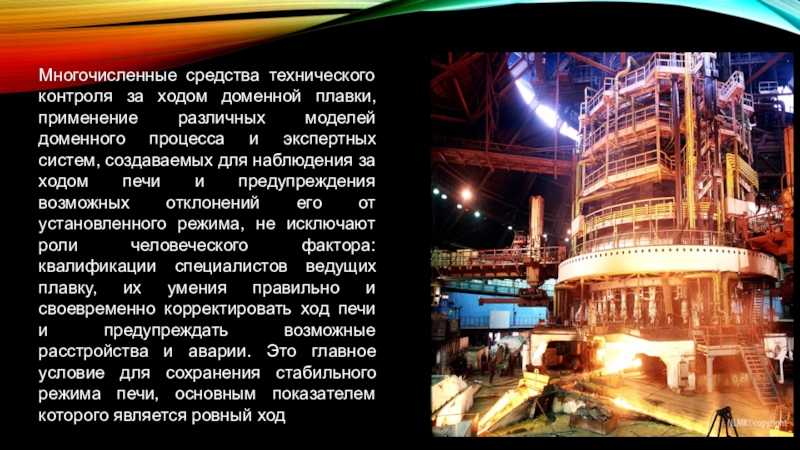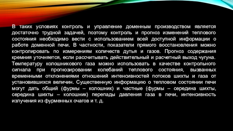 Слайд 18В таких условиях контроль и управление доменным производством является достаточно трудной