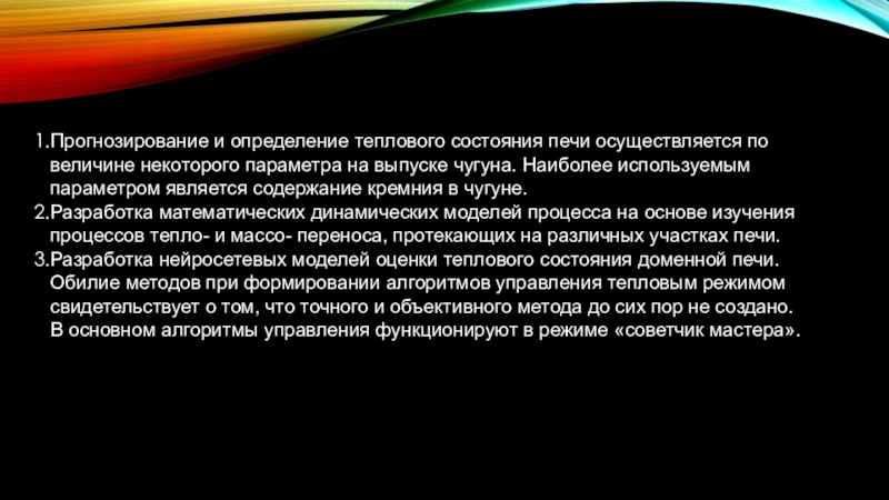 Слайд 21Прогнозирование и определение теплового состояния печи осуществляется по величине некоторого параметра