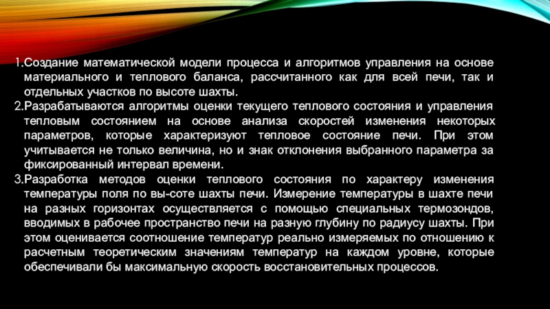 Разработка математических динамических моделей процесса на основе изучения процессов тепло- и массо- переноса, протекающих на различных участках печи.
