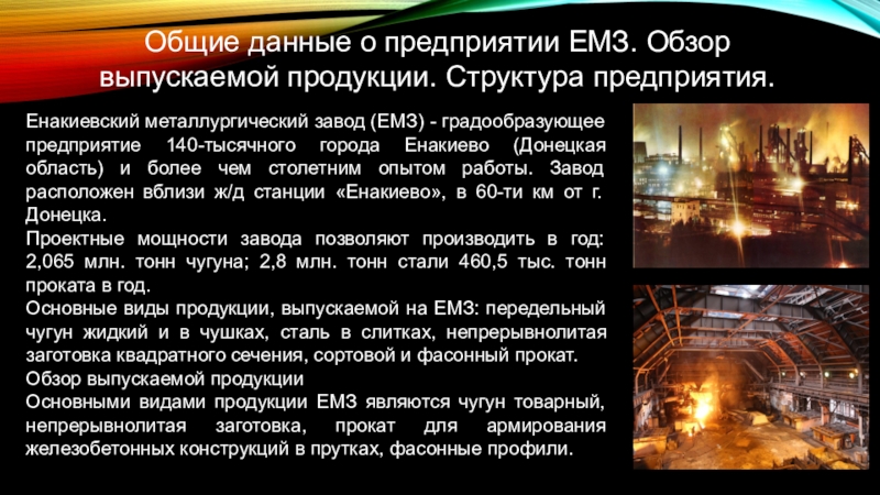 Слайд 3Общие данные о предприятии ЕМЗ. Обзор выпускаемой продукции. Структура предприятия.