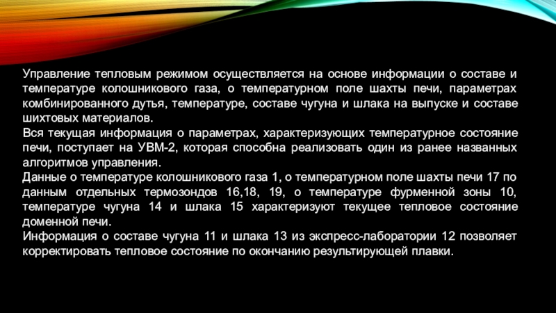 Слайд 23Управление тепловым режимом осуществляется на основе информации о составе и температуре