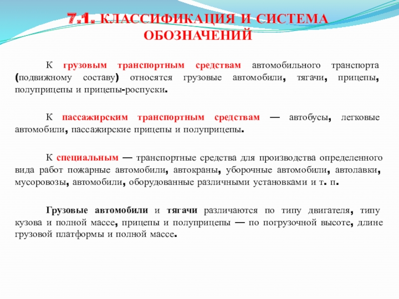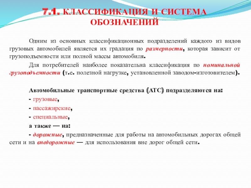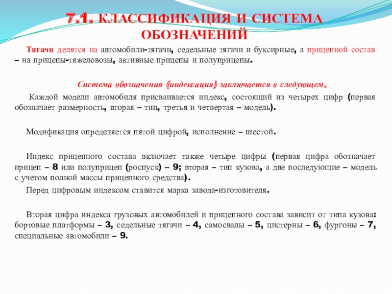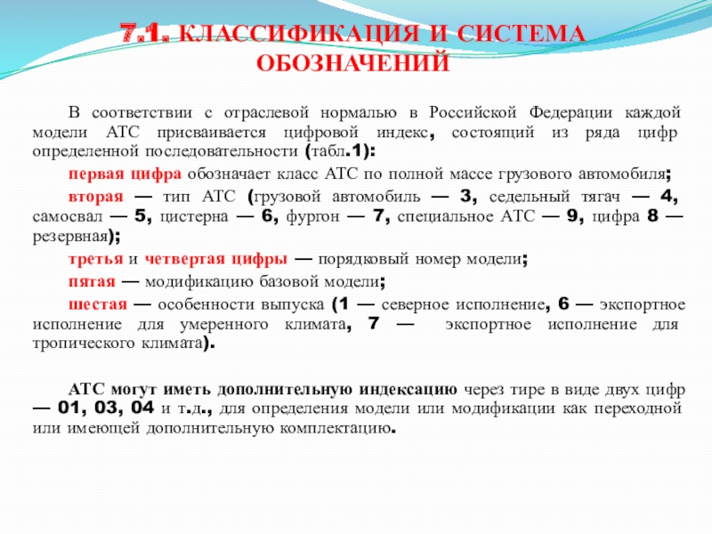 Слайд 77.1. КЛАССИФИКАЦИЯ И СИСТЕМА ОБОЗНАЧЕНИЙ