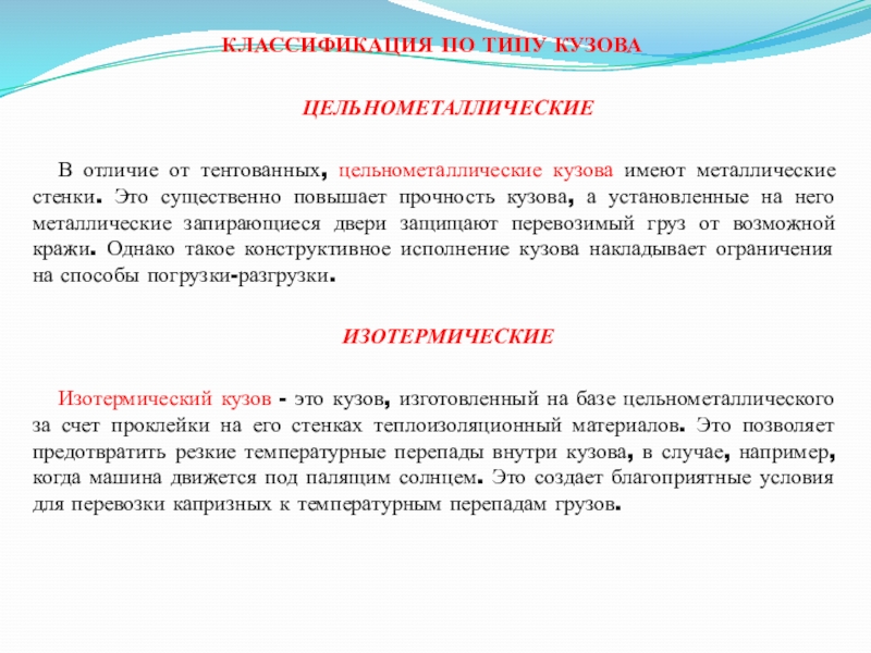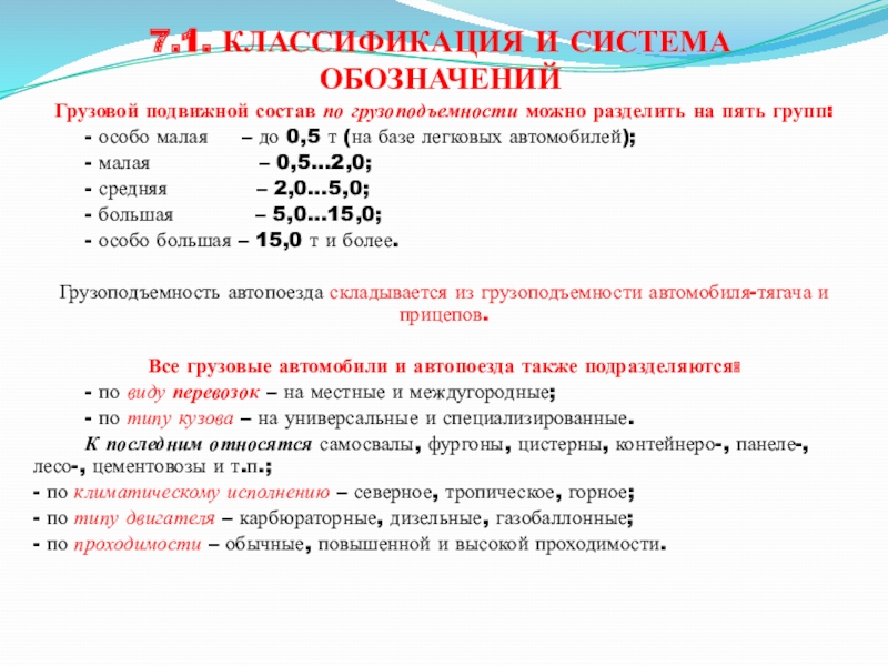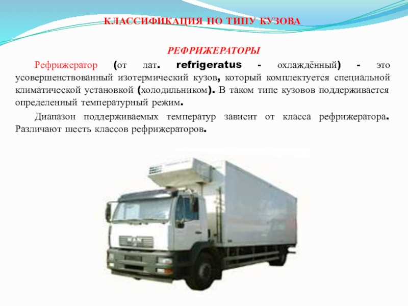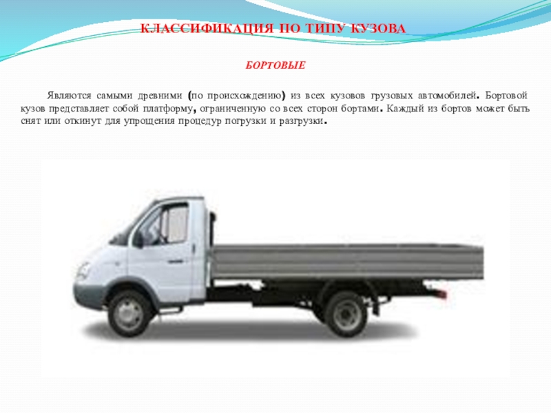 Слайд 29КЛАССИФИКАЦИЯ ГРУЗОВОГО АВТОТРАНСПОРТА ПО ТИПУ