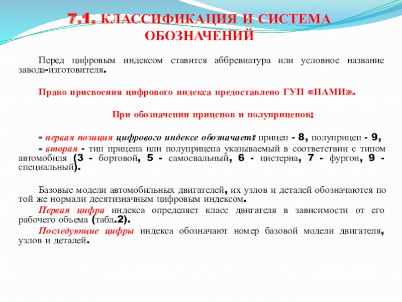 Слайд 87.1. КЛАССИФИКАЦИЯ И СИСТЕМА ОБОЗНАЧЕНИЙ