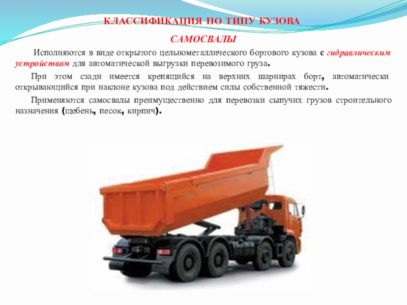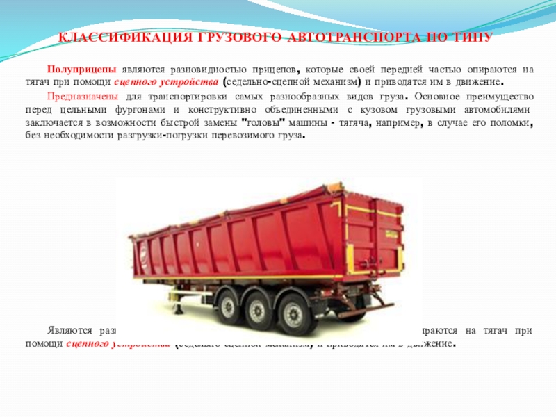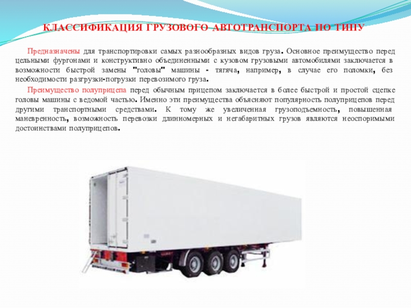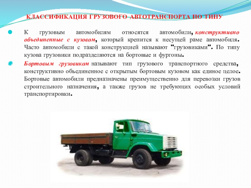 Слайд 27КЛАССИФИКАЦИЯ ГРУЗОВОГО АВТОТРАНСПОРТА ПО ТИПУ