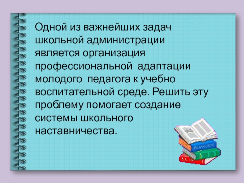 Слайд 8Одной из важнейших задач школьной администрации является организация профессиональной адаптации