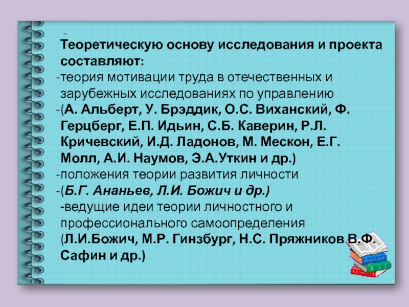 (Л.И.Божич, М.Р. Гинзбург, Н.С. Пряжников В.Ф. Сафин и др.)