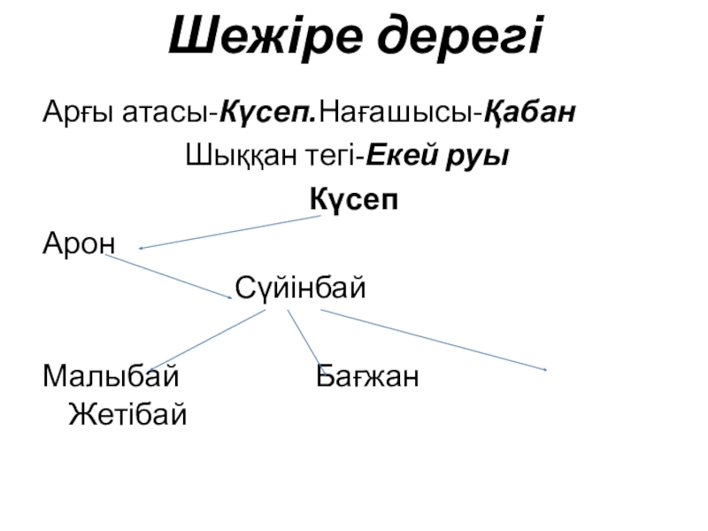 Шежіре дерегі Арғы атасы-Күсеп.Нағашысы-Қабан          Шыққан тегі-Екей руыКүсепАрон