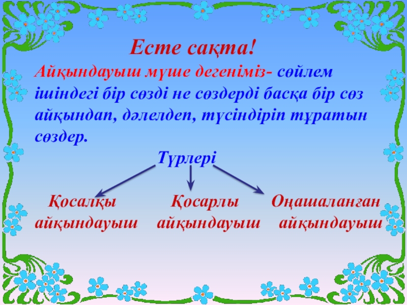 ішіндегі бір сөзді не сөздерді басқа бір сөз айқындап, дәлелдеп, түсіндіріп тұратын сөздер.