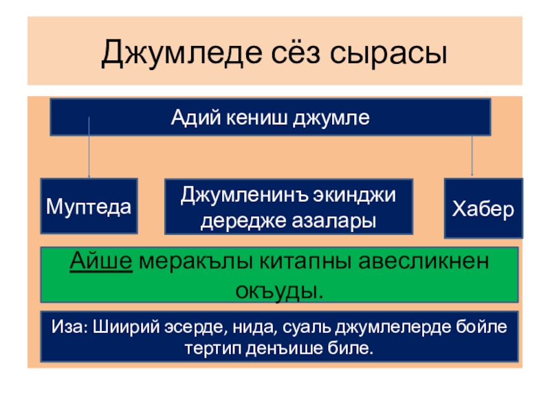 Иза: Шиирий эсерде, нида, суаль джумлелерде бойле тертип денъише биле.