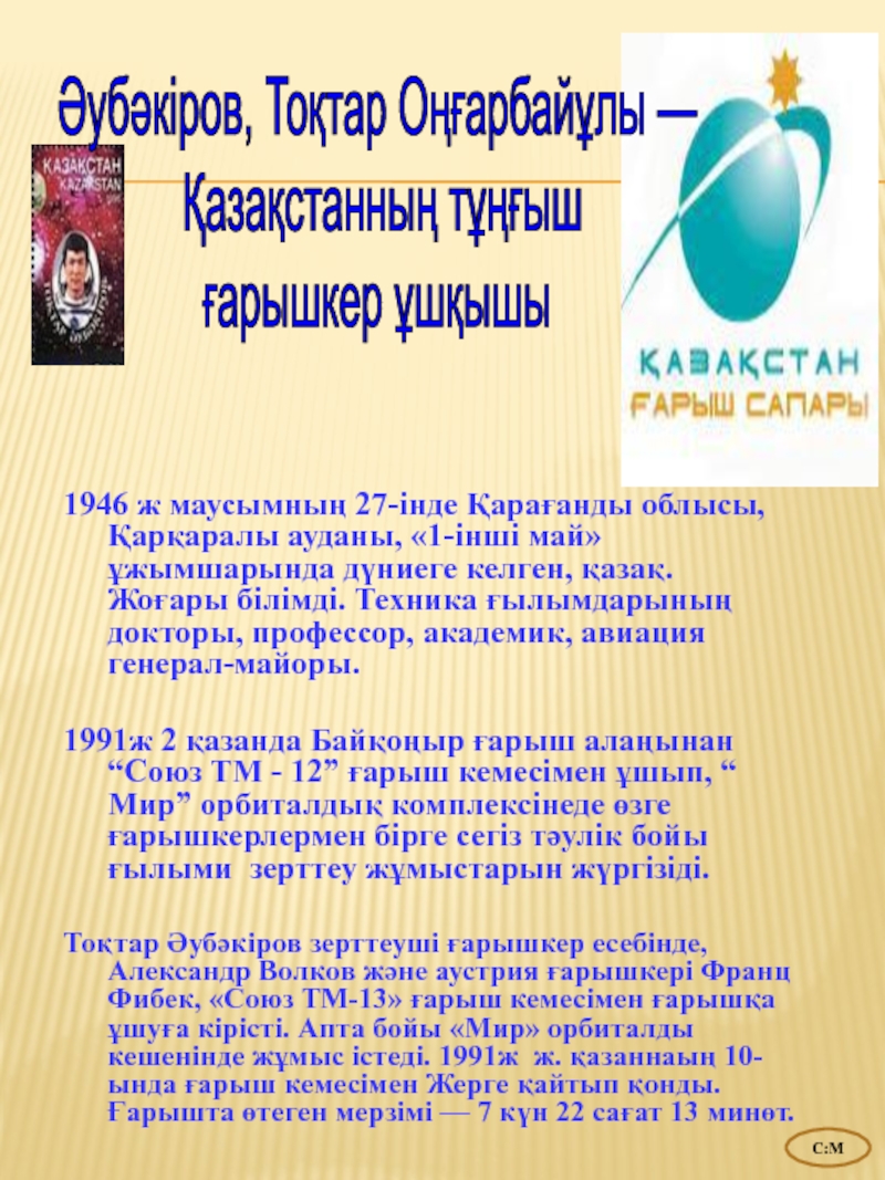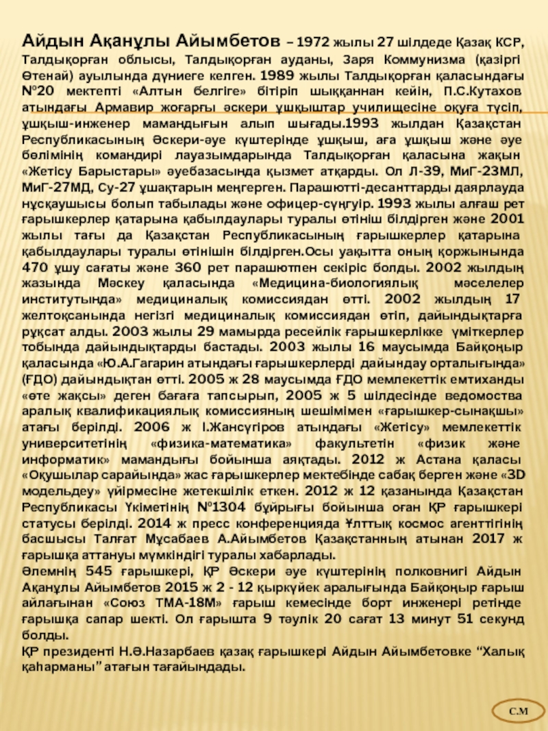 ҚР президенті Н.Ә.Назарбаев қазақ ғарышкері Айдын Айымбетовке “Халық қаһарманы” атағын тағайындады.