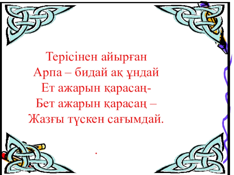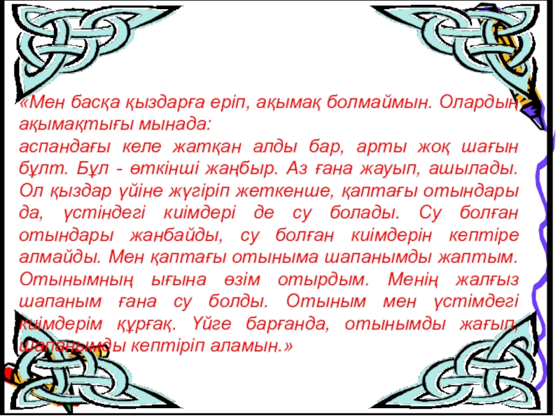 Слайд 22«Мен басқа қыздарға еріп, ақымақ болмаймын. Олардың ақымақтығы мынада: