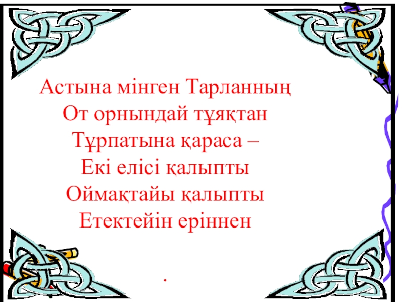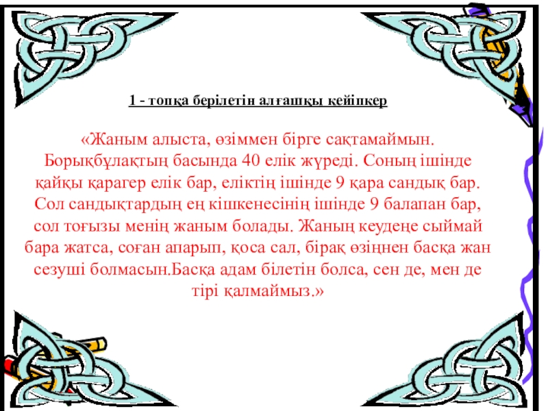 Слайд 201 - топқа берілетін алғашқы кейіпкер