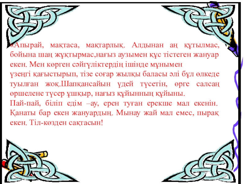 «Апырай, мақтаса, мақтарлық. Алдынан аң құтылмас, бойына