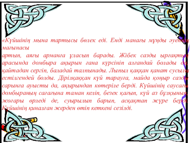 «Күйшінің мына тартысы бөлек еді. Енді манағы мұңды әуеннің мағынасы