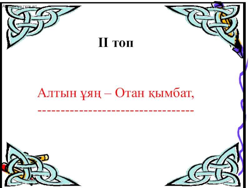 Слайд 212- топқа берілетін алғашқы кейіпкер