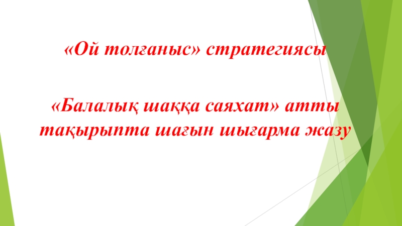 «Ой толғаныс» стратегиясы«Балалық шаққа саяхат» атты тақырыпта шағын шығарма жазу