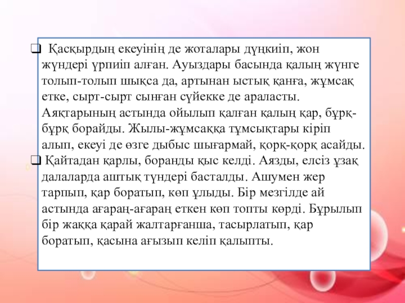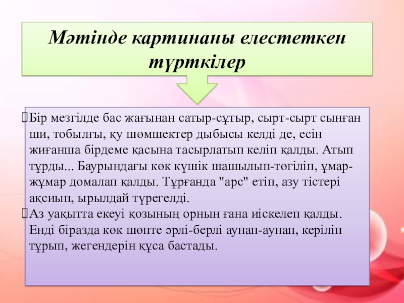 Слайд 7Мәтінде картинаны елестеткен түрткілер
